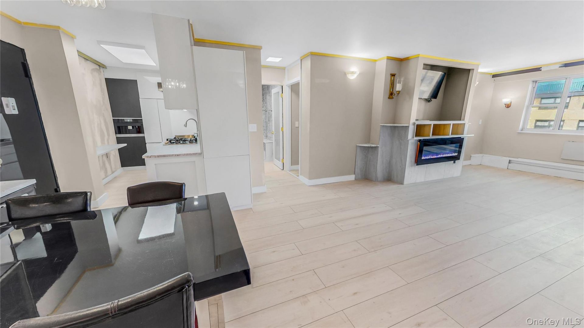 Welcome to Berkeley Towers - a full-service cooperative offering comfort, convenience, and elevated living. Perched on the 10th floor of this well-maintained 12-story elevator building, this meticulously upgraded one-bedroom residence seamlessly blends modern luxury with thoughtful design. The living room is thoughtfully designed with a custom-built entertainment center featuring an integrated electric fireplace, creating a warm and inviting focal point. The chef-inspired kitchen is equipped with premium appliances, including a built-in Miele coffee system, Ancona gas cooktop, Empava wall oven, and Samsung dishwasher, all complemented by a top-tier water filtration system. Custom cabinetry and a dedicated dining area enhance both functionality and style. The spa-like bathroom showcases elegant marble tilework, a bidet, and custom-built corner shelving-providing smart storage for linens and everyday essentials. Residents of Berkeley Towers enjoy a full suite of amenities, including a 24-hour doorman, on-site superintendent, and laundry facilities. Ideally located just moments from the 52nd Street subway station, offering seamless access to Manhattan and beyond. A rare opportunity to own a fully upgraded, move-in-ready home in a highly desirable full-service building.